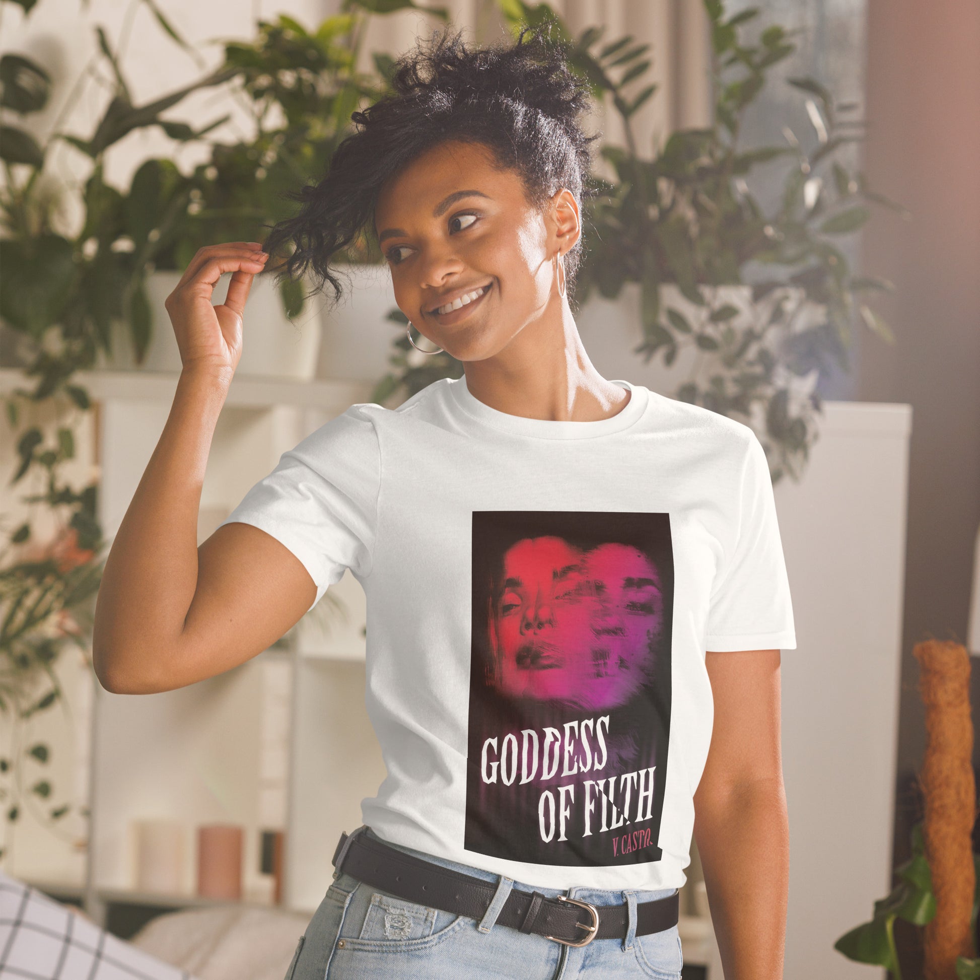 You've now found the staple t-shirt of your horror wardrobe THE GODDESS OF FILTH BOOK COVER TEE- . It's made of 100% ring-spun cotton and is soft and comfy. The double stitching on the neckline and sleeves add more durability to what is sure to be a favorite!